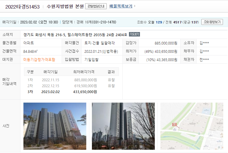 | 1. 2022타경51453 | 수원지방법원 본원 |