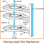 1. Magnetic disk Arm으로 데이터를 읽고 쓰며 읽을 때는 전류가 흘러 나오고 적을때는 반대로 흘려 보낸다. 같은 실린더에 적으면 읽는 속도가 빠르며 단위 섹터 페리티 비트 떄문에 실제 파일 크기보다 더 크다. 2. Solid-State Disk seek 타임이 없고 주소로 바로 접근가능하다. 다만 수명이 짧아 지우는 횟수에 한계가 있다. 따라서 어느 정도 모이면 지우는데 이때 지우는 파일을 구별하기 위해 블락에 valid, invalid를 표시한다. 3. Disk Scheduling 디스크에 블락을 찾는 요구가 한번에 들어올 경우 순서를 정해야한다. 1. FCFS : 먼저 들어온 것이 먼저 나감 - 낭비 심함 2. SSTF : 가장 가까운거 처리 - 실시간에서는 기아가 발생함 3. SCAN..